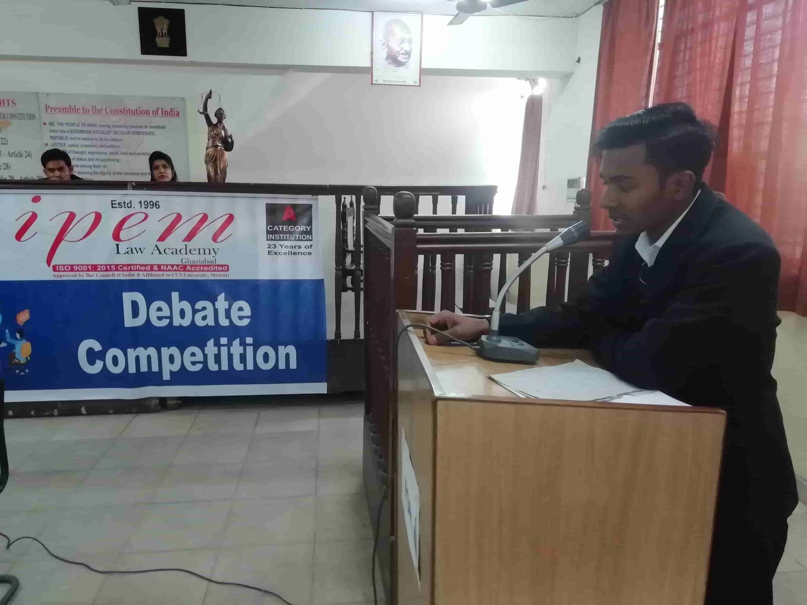 IPEM Law Academy organized a debate competition on 31st January, 2019 at Moot-Court Hall. This competition was organized for BALLB Second Semester. There were three topics for the competition. –