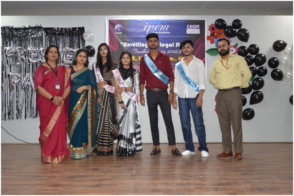 Freshers’ Day was conducted on 29th of September, 2023 in Laxmi Chand Auditorium from 2 PM to 4 PM for the students admitted in the first year of both the BCOMLLB and BALLB. The event began with the lamp lightening and was further inaugurated by a welcome speech by Dr.Minaxi Tomar, Principal at IPEM LAW ACADEMY. BALLB students(III Semester) Himanshu and Khushi anchored the whole program with remarkable enthusiasm. All the students participated in the event with the tremendous energy that was shown in the different acts performed by them. The event witnessed many cultural programs including dancing, singing, poetry, push-ups, ramp walks etc, followed by refreshments. Mr. Haider Ali and Ms. Anvi Tyagi from BALLB were selected as Mr. And Ms. Freshers and Akash Bhati and Ms. Vidhi Jain from BCOMLLB were announced as Mr. And Ms. Freshers. In the end, the convener gave the vote of thanks and the event ended up successfully with the snacks distribution.