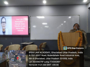Human Rights Day is celebrated on 10th of December which marks the adoption of Universal Declaration of Human Rights, UDHR. This year on the occasion of Human Rights Day a session was hosted by IPEM Law Academy, which was graced by Prof Dr Kahkashan Y. Danyal, Dean Jamia Milia Islamia. The event staged a great interactive discussion on the topic Human Rights Issues: Right to Liberty; Equality in Respect of Women and Children. It hightlighted the plight of woman and children in present era and students also participated in speech competition focussing on various themes stemming from Woman and Children rights in present era.
