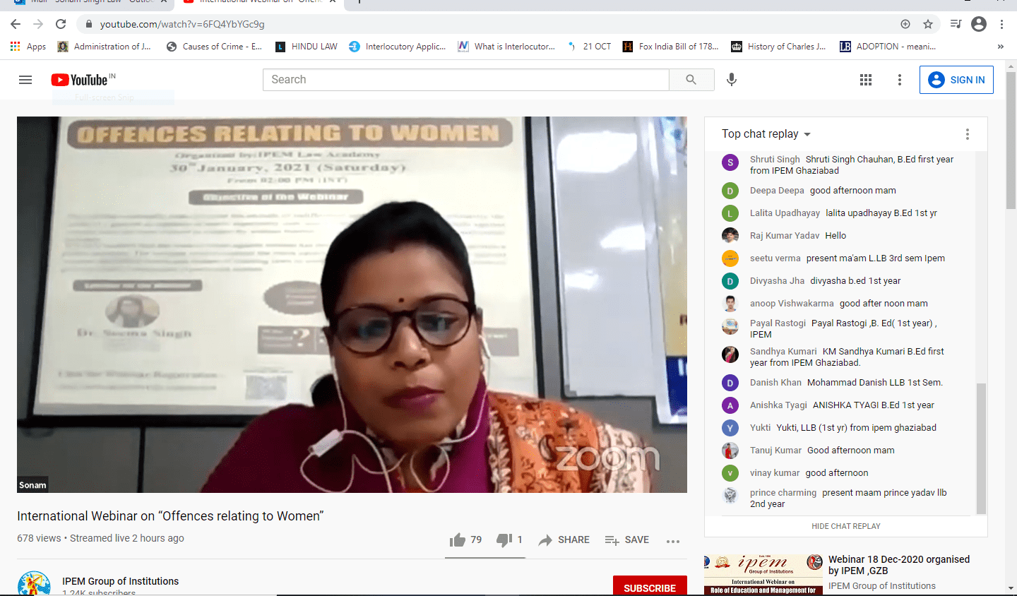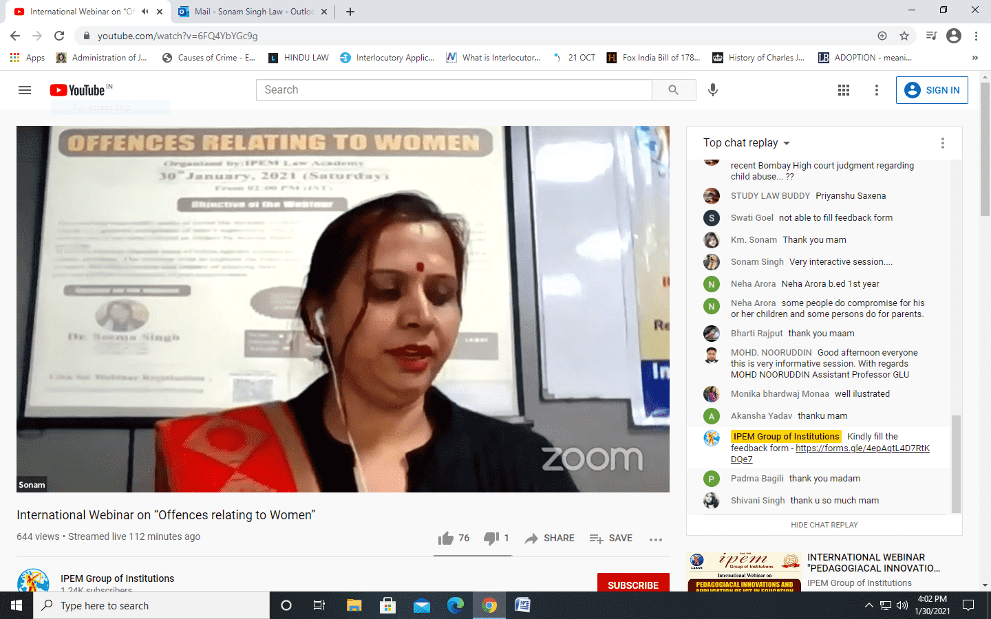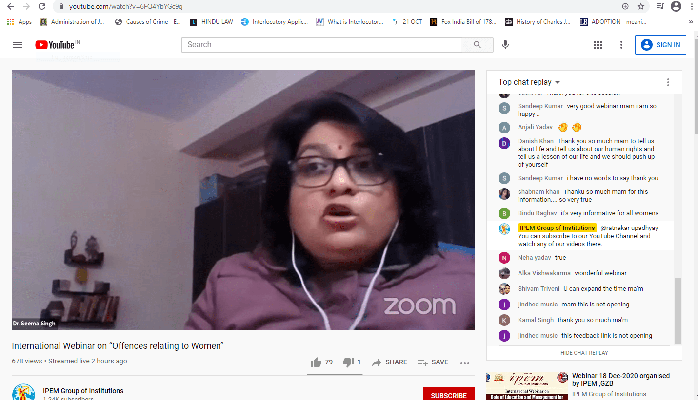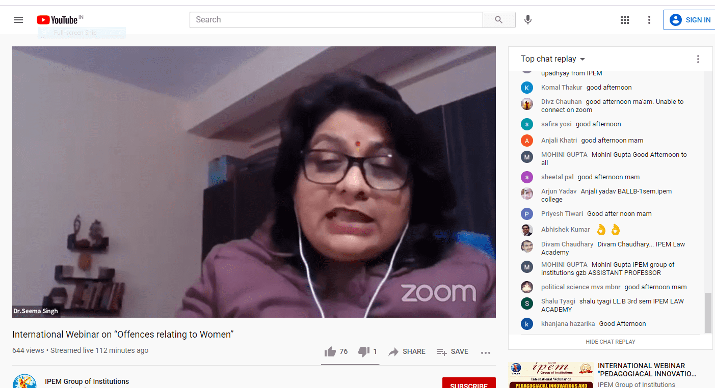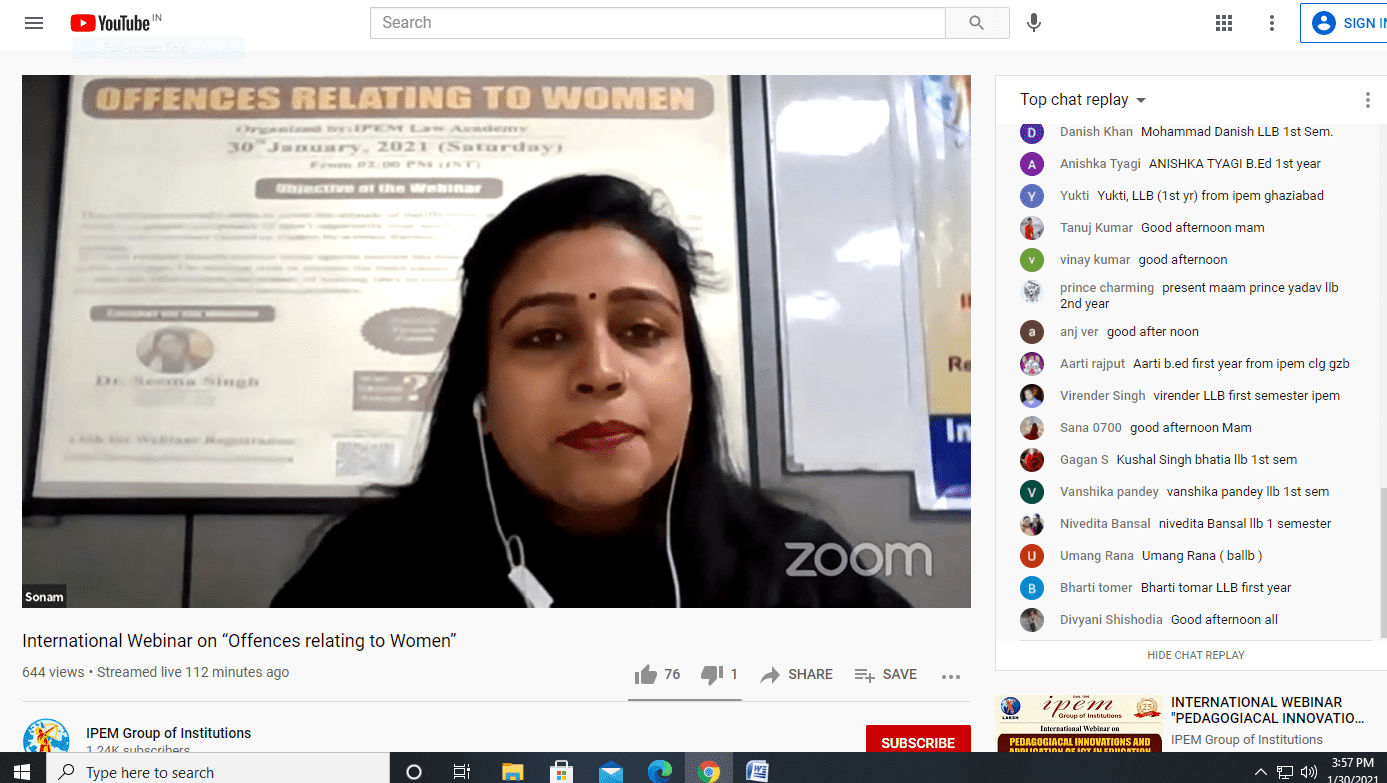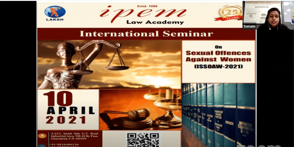 IPEM LAW ACADEMY organized an INTERNATIONAL WEBINAR ON “OFFENCES AGAINST WOMEN” on 30th January, 2021 (Saturday).