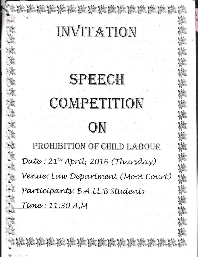 IPEM Law Academy organized a Speech Competition on Child Labour Prohibition on 21st April 2016 from 11:30 AM to 12:30 PM in the Moot Court (Law Department) for BA LLB students.